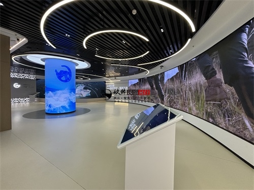 今天分享的是银川水利水电办公楼装修设计实景照片,该水利水电办公楼装修设计风格,是银川装修公司镹臻团队擅长的“科技极简风+行业主题叙事”融合设计,既贴合水利水电领域专业属性,又通过现代空间语言传递工程科技的质感,核心关键词可归纳为“沉浸式科技感、主题化场景、极简工业肌理”。从办公楼装修空间基底看,银川筑臻延续了其标志性的“极简工业风”特质——顶面采用黑色竖向金属格栅+嵌入式环形灯带,既用硬朗的工业肌理呼应水利工程的“硬核”属性,又通过流线型灯光弱化冰冷感;地面选择浅灰色哑光地坪,既保证办公空间的整洁耐用,又以低饱和色调衬托陈列物品的视觉重心。