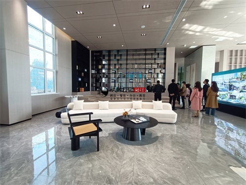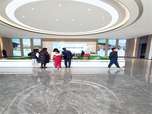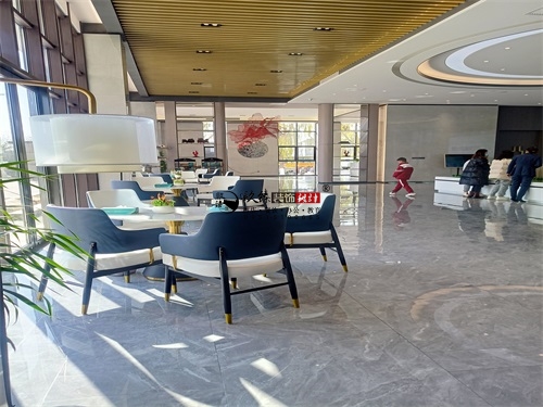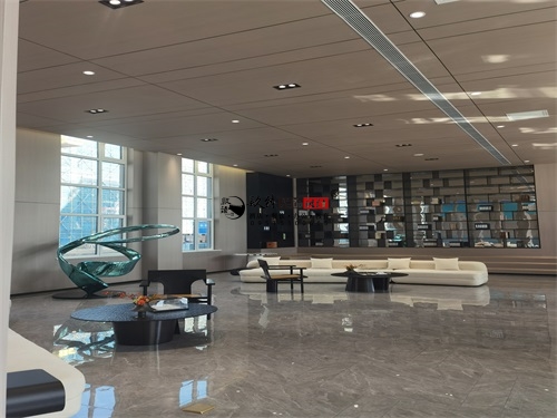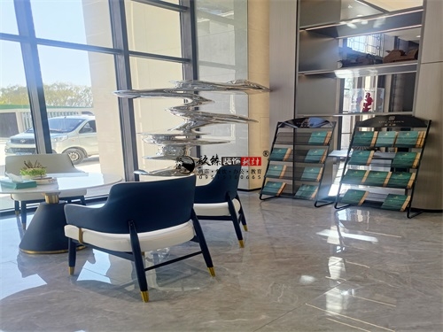 今天分享的是银川熙玉园售楼部大厅装修项目实景图分享。售楼部大厅内的家具选择极具设计感,如弧形白色沙发,造型流畅且材质,搭配黑色金属质感的圆形茶几,形成“黑白灰”经典轻奢配色,既显时尚又不失稳重。地面采用的是大规格灰色大理石瓷砖,通过高光工艺呈现出强烈的镜面反射效果,既延伸了空间视觉感,又传递出高端、精致的奢华气质,整体而言,该售楼部以现代轻奢风为基调,通过材质、家具、艺术装置的精心搭配,打造出既高端大气又富有艺术感的空间,既能吸引客户目光,又能传递出项目的品质定位,是现代售楼部设计中“形象展示+体验感营造”的优质范例。